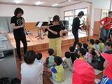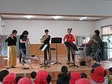 6月2日(金)に隣接する縄瀬保育園の音楽鑑賞に招待していただき1年生から3年生までが参加しました。今回の演奏は木管楽器の五重奏でした。子どもたちの知っているジブリなどの曲の演奏や楽器の説明、クイズなど子どもたちが楽しめるプログラムで、子どもたちも夢中になって聴いていたようです。また、最後には演者が子どもたちの間に入ってくる場面もあり、音の響きや指の動きなどを間近で感じ取ることができたようです。