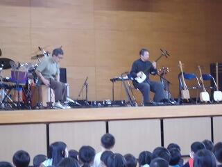 今年の音楽鑑賞教室も高崎地区5校が高崎小学校に集まって、実施されました。今年は地元の音楽ユニット「温故知新」による三味線とドラム&パーカッションの演奏でした。三味線の響きや手や足を使ってリズムを刻む打楽器の数々に子どもたちは聞き入っていたようでした。途中、各学校の代表児童が楽器を使って、ソーラン節を演奏する場面もありましたが、初めての楽器も多かったと思いますが、上手な演奏になっていました。