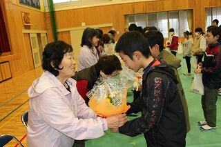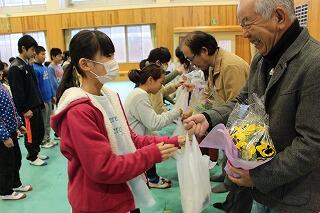 皆様方のお陰で、子どもたちが、交通事故や不審者の被害に遭うこともなく、無事に今年度を終えることができそうです。ありがとうございました。(プレゼントは、子どもたちの育てたお花と餅米です。)