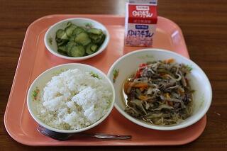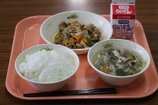 ごはん・チンジャオロース・チンゲン菜スープ・牛乳