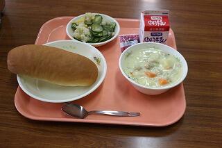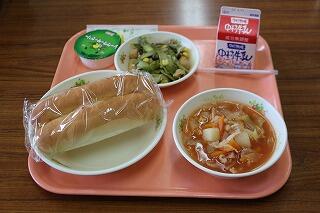 マヨネーズパン・マカロニスープ・アスパラソテー・シークワーサーゼリー・牛乳