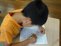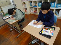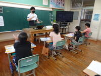 1~4年生は、算数の授業でした。1年生は、1桁+1桁のたし算の復習でした。答えが9になるたし算のところを色を塗る問題等に取り組んでいました。2年生は、2桁のひっ算のまとめでした。プリントにチャレンジし、間違ったところはしっかりやり直しまでできていました。