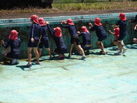 本日の5・6時間目に、3~6年生と先生方でプール掃除を行いました。消防団の方も手伝いに来てくださって、ホースで水をかけてくださいました。保護者の方も多数、応援に駆けつけてくださいました。しばらく使っていなかったので、プールの底がぬめっていたり、プールサイドに草が生えていたりして大変でした。でも、子どもたちが一生懸命、磨いたり掃いたりしてとってもきれいになりました。小プールの水の排水がほんの少ししか出ない等のトラブルもありましたが、日差しが強く気温も高い中、来週のプール開きに向けて、とってもきれいにすることができたと思います。