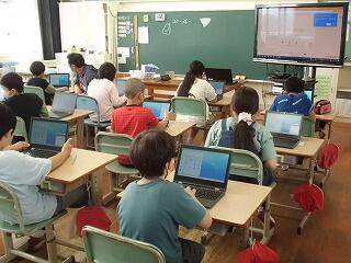 4年生からはタブレットがキーボード付のものになります。そのため、新しく自分のアカウントを設定したり、学習で使うアプリの確認やグーグルクラスルームの設定を行いました。早速、社会科のデジタル教科書が配付され、子どもたちは、みんな興味深そうに画面を操作して内容の確認をしていました。