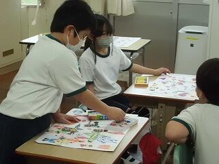 2,3年生は図画工作で自分の好きなものを描いています。果物や動物、アニメのキャラクター・・・など、友達と情報を交換する度に題材となる対象について思考が広がり、絵が増えていきました。5年生の理科、6年生の理科でも条件や方法、結果の予想など友達同士で意見を交わしながら学習を進めていました。