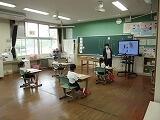 授業を見て回ると、どの学年も積極的に画面(モニター)を使って学習を進めています。1年生はことばの提示、2年生は「cm(センチメートル)」の筆順練習、3,4年生は外国語活動で対応するイラストとことばを線で結ぶ活動と使用する場面は様々です。学習にあわせて教材の提示や活用を日頃から工夫している先生の備え、そして、それらを活用した学習で子どもたちが活動に集中して取り組む姿をうれしく思います。