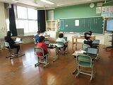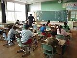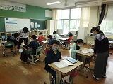 今回は4,5,6年生の様子です。4年生は算数で正確な三角形のかき方を学習していました。どんな道具を使うとよいのか、どこから書き始めるのかなど友達と意見を交わしながら解決方法を探っていました。5,6年生は複式での学習を進めていました。その中でも担任が前後で時間を分けて指導を進めるので、互いに教え合ったり、結果を確認し合ったりする姿が見られました。