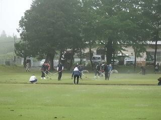 全校児童で、掃除の時間にプールの草抜きをしました。