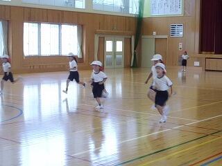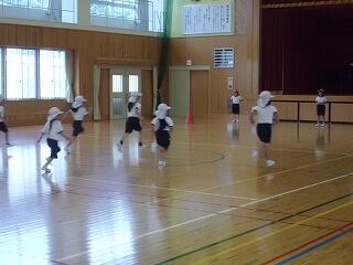 4,5,6年生が体育館で合同体育をしていました。授業の前半で両膝を曲げて中腰になり、そこから片足を後ろにあげて、バランスをとりながら、さらに残った膝を曲げて姿勢を低くしていく運動などをしていました。ぐらぐらしながらもしっかり曲げられた児童、すっと何事もないように重心を下げられた児童、ばたりと倒れる児童様々でした。子どもたちは笑顔で何度もチャレンジしていました。