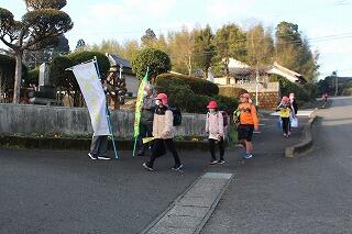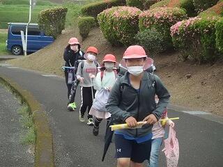 4月12日から1年生も登校班に入って、歩いて一緒に登校してきました。みんな荷物の入ったランドセルを背負いながらも、しっかりとした足取りで歩いていました。また、この日は地区のあいさつ運動もあり、児童の登校を見守っていただきました。