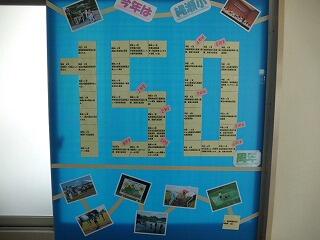 校長室前のパネルのカードが並び、「150」の数字ができあがりました。カードにはこれまでの縄瀬小のできごとや先輩の活躍が記されてあります。その中で目立つのは伝統の自転車競技大会についてです。県大会で優勝して全国大会に行くこと9回、県大会準優勝も15回を数えます。これからも150周年の行事へ向けて児童も様々な活動に携わります。一つ一つがよい思い出になってくれればと思います。