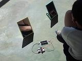 6年生は理科(電気の学習)で光電池を使った実験を行います。これまで3回、悪天候で実施が延び延びになっていました。この日は絶好の晴天、光電池を太陽に向けてモーターにつないだプロペラを使う鏡の増減で照らす明かりの強さを変化させるなど条件を変えて実験しました。最後は、追加で光電池からコンデンサーに電気を蓄えて、それを使えるかも実験できました。