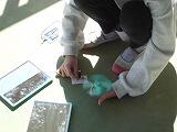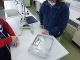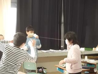 3年生の教室で紙コップを使って何か作っています。二人組になって紙コップの底にあけた小さな穴に糸を通し、クリップとテープで外れないようにしています。作業を交代して反対の糸も同様に止めています。できあがったのは糸電話。児童が予想していたより声がしっかり響いたみたいで驚きと喜びの歓声が上がっていました。二人ともコップを耳に当て「・・・ん、何も聞こえないね。・・・あ、そうかどっちか話さないと」といった、ほほえましい場面もありました。五感を生かして学習するのも理科の楽しみの一つですね。