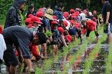 毎年恒例の田植えを行いました。これまで、地域の協力者の方々が、田起こし、しろかきなどをしてくださって、準備万端です。PTAの環境事業部の皆さん方が中心になって加勢してくださいます。子どもたちも小雨降る中、頑張りました。収穫の秋が楽しみです!