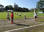 1時間目は雨が降りそうな空模様の中、1・2年生が徒走の練習をしていました。最初は短い距離からダッシュして、だんだんと距離を延ばしていきます。走り終わるとさっとスタート位置に戻り、また走り出す1・2年生。きびきびとした姿が見られました。