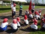 開会式の練習の後、各団までの退場の練習をしました。1~4年生は団長先頭で1コースを、5・年生は副団長先頭で2コースを駆け足で退場していきました。そして団長の掛け声にそろえて、各団の前で止まり着団しました。