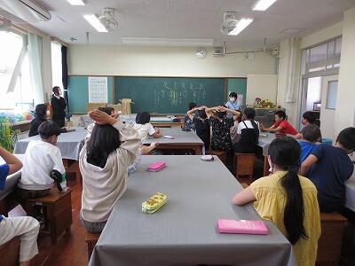 立腰体操は、体をほぐして、勉強に集中して取り組むことができるようにと始まった取組です。