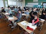 5年生は国語で、新出漢字の練習をしていました。教頭先生が備忘録という単語から派生して、ノートの取り方を熱く指導してくださっていました。黒板を写すだけでなく、友だちの意見、先生の助言など、気付いたらメモする大切さを話されていました。6年生も国語で「帰り道」という物語を読んで、登場人物の「律」と「周也」の心情を考える内容でした。同世代の登場人物で感情移入しやすいのではないかと思います。しっかり読み取ってほしいです。