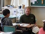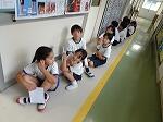 1・2年生の教室は空っぽでした。生活科の学校大好きで、学校を探検しているはずですが、なかなか会えません。図書室に行ったらやっと1年生に会えました。それから教室に行くと、入れ違いになったのか2年生にも会えました。