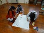 3年生は算数で、▢×10=の学習でした。おはじき入れゲーム(同心円上に書かれた10点、5点、3点、0点の的におはじきを入れて得点を競う)をしながら、それを表にまとめ点数を出していました。すぐには勝敗が見えないので、どきどきで非常に盛り上げっていました。もちろん計算もばっちりでした。4年生は1億を超える数の学習でした。48億という数について、1000をいくつ集めた数かなど、いろんな視点で考えていました。