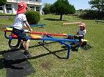 1・2年生は体育で。かけっこをしていました。5月には体力テストもあり、その練習も兼ねてのことでした。2人で競争しましたが、さすが先輩の方がリードしていました。しかし1年生も負けてはいません。かけっこでも切磋琢磨できるといいですね。かけっこの後は休憩し遊具で楽しみました。4月だというのにもう夏日です。熱中症も気を付けないといけない時期になりました。