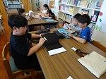 4年生は、「白いぼうし」のテストでした。読み取りはもちろん、言葉の意味や新出漢字の読み・書きもありました。早めに見直しまで終わった人は、タブレットで「キーボー島」のソフトでタイピングの練習をしていました。