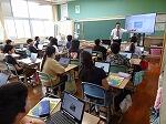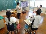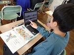6年生は「漢字の広場」で、これまでに学習した漢字の熟語がたくさん載っていました。「水質」「調査」ということばから、「水生生物調査」の話になり、それをタブレットで調べていました。それから派生して「宮崎県でとれる魚」について調べ始めました。教科書の漢字だけではなく関連するものについてすぐに調べられるタブレットを活用できていました。