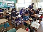 5年生は、教頭先生と国語のオリエンテーションでした。自己紹介なども含め楽しく紹介をしあっていました。6年生は、担任の久場先生と「つないで、つないで、1つのお話」という単元で、実際に前の日との考えた分につなげて次の文を作ってみるということを試しにやっているところでした。これからどんな話が作られていくか楽しみです。あおぞら学級は、担任の宮内先生と漢字ドリルを使って、5年生の漢字の復習をしていました。案外、忘れているものもあって確認しながら書いていました。