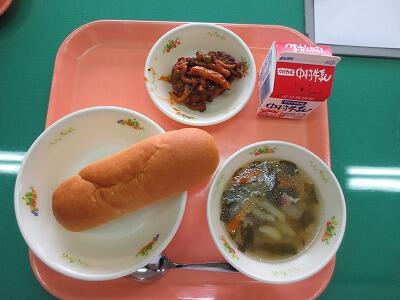 ・ごはん ・豚肉と刻み昆布の炒め物 ・ごもく汁 ・牛乳