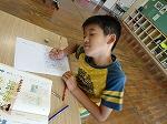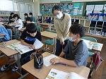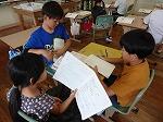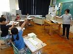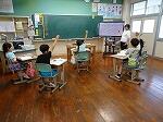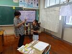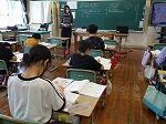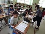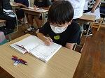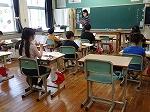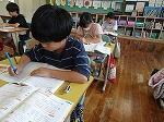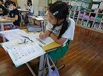 1年生は国語で「おむすびころりん」のお話でした。好きな場面を選んで読み、何と体を使って劇もしていました。「おむすびころりんすっとんとん」の歌に合わせて上手に踊っていました。2年生も国語で「夏がいっぱい」という学習で、夏を感じる言葉を探していました。ノートには、「かきごおり」「そうめん」「プール」などが書かれていました。