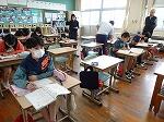5年生は国語で「話す・聞く」のテストでした。CDから流れる文章を聞き取り問題に答えていきます。また、ある場面でどのように説明するのがよいかを考える問題です。日頃からの力が試されます。それが終わった後は、教頭先生と4人でフリートーク。この力も今後、ますます重要になってくるでしょう。