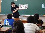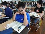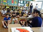 5・6年生には、「七夕まつり」「にているね」「うさぎとかめ」等のお話を読み聞かせしてくださいました。面白い話もあり、大爆笑というより「にやり」と笑う姿が印象的でした。内容は分かりやすかったと思いますが、もっと反応が大きい方が先生も助かるのではと思いました。