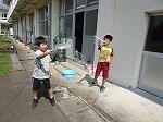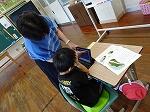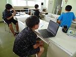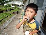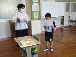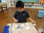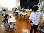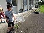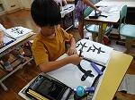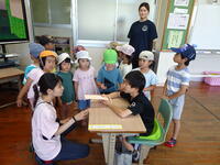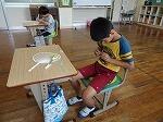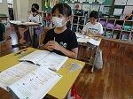 1・2年生は生活科で、少し涼しい感じがする「しゃぼんだま」を作って活動していました。最初に、ストローの先を切ったり、うちわの骨組みを準備したりしました。それから外に出て、しゃぼんだまを飛ばします。最初は勢いが強すぎて、なかんかうまくいきませんでしたが、すぐにコツをつかみ、大きなしゃぼんだまを作って楽しんでいました。
