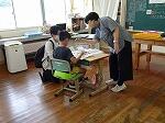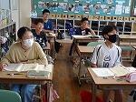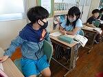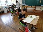 6月23日(月)は、断続的に雨が降っており割と過ごしやすいです。1年生は国語で前の時間の続きで、「は」「へ」、「を」について学習しており、黒板いっぱいの例の正しい使い方に的確に答えていました。2年生も国語で前の時間にメモを書いていた「つばめのす」について作文に書きました。メモもあり記憶に新しいのかすらすらと書いていました。