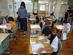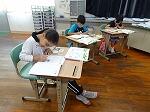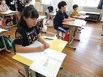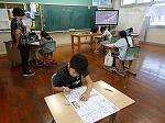 3・4年生は国語の書き方で「毛筆」でした。3年生は「日」、4年生は「左右」の字を書いていました。字のバランスがなかなか難しいようでした。4年生は名前までしっかりと書いていました。また、宮日新聞のみんなの作品の欄に応募します。