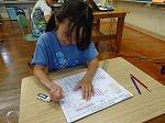 最後にまとめの時間として15分が確保され、自分のペースで次々とたくさんの問題にチャレンジしていました。久場先生も丸付けしながらクリアした子には次の問題を渡し、子どもたちの意欲に負けじとがんばっていました。