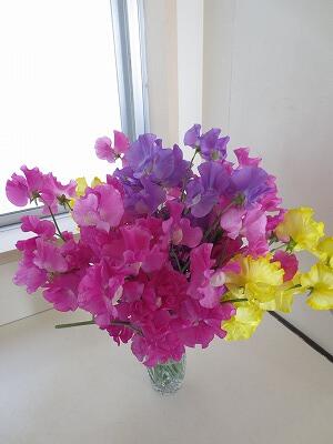 先日、上原さんが、学校に色とりどりのスイートピーを届けてくださいました。