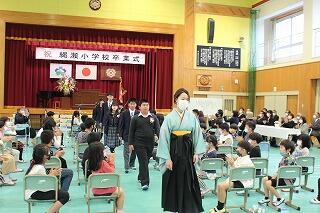 3月23日(木)卒業式が挙行されました。今年の卒業生は7名で、全在校生や職員、保護者や来賓の皆様に温かく見届けられながらの式となりました。卒業生の所作も立派で、また、在校生との歌の交歓も心地よい素晴らしい響きでした。在校生に最後の素晴らしい姿を残してくれました。縄瀬小を巣立ちゆく7名の中学校でのさらなる活躍を願っています。