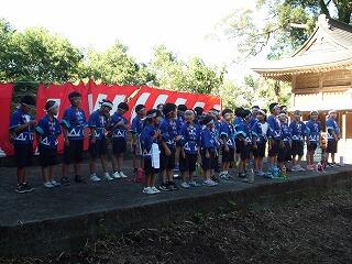 7月16日は(日)は、4年ぶりの地域の菅原神社の祭りでした。児童は、元気よくかけ声をかけながら子ども神輿を引いて地域を歩きました。沿道では地域の方から温かい声をかけていただきました。また、神社では神事の後、子どもたちの歌の披露や蔵元地区の奴踊り保存会と一緒に奴踊りを踊りました。暑い日でしたが、子どもたち夏の暑さに負けない元気が地域に届いたようでした。(菅原神社の敷地内に「縄瀬小学校発祥の地」の碑がありました。)