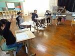 3年生も算数で、分数のひき算のしかたを考える内容でした。「ジュースが3/5lあります。1/5l飲むとのこりは何lですか」といった問題を一緒に考えていました。まず、3/5について考えていましたが、学習済みの内容でしたが、絵を使って、「いくつに分けてある?」「ここが何になる」など、手はたくさん挙がるのですが、的確に答えるのが難しく、計算前に分数の復習からがんばっていました。