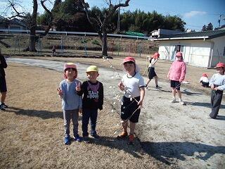 運動場にいると遠くからかわいらしいあいさつの声とともに2名の保育園の年長さんが「めの餅」を届けてくれました。運動場で遊んでいた4年生が代表で受け取り、みんなでお礼を伝えました。枝には赤や黄、緑の色鮮やかな餅が飾られていました。保育園のみんなで一生懸命に作ったそうです。ありがとうございました。