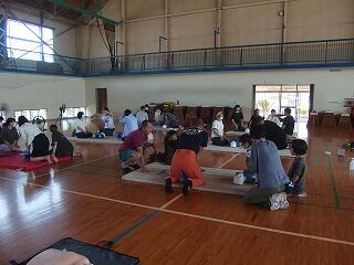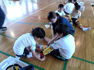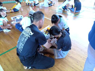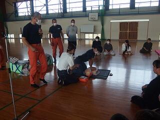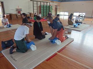 6月6日に参観日がありました。多数参観していただき、ありがとうございました。4校時に、PTA保健体育委員会による心肺蘇生法の講習会を行いました。約30名の参加者があり、消防署の職員の方の指導を受けながら、胸骨圧迫やAEDの使い方などを学びました。