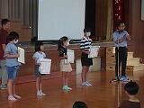 まずは、「家族の作文」です。本校から最優秀賞4名、優秀賞4名、優良賞3名、佳作3名が選ばれましたので、校長先生に紹介&表彰をしていただきました。