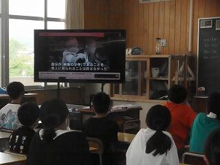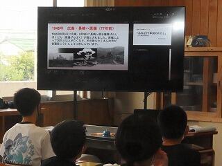8月1日は登校日でした。全校集会は体育館での暑さを考慮し、オンラインで行いました。校長先生のお話は、戦争・平和に関する話でした。第2次世界大戦のきっかけ、広島と長崎に落とされた原爆のことなどをわかりやすく話していただきました。また、戦争から生き残った方のドキュメンタリー動画も見せていただきました。平和の尊さについて、考える貴重な時間となりました。その後、担任の先生が、平和に関する絵本の読み聞かせをしている学級もありました。ご家庭でも平和について話し合ってみてください。