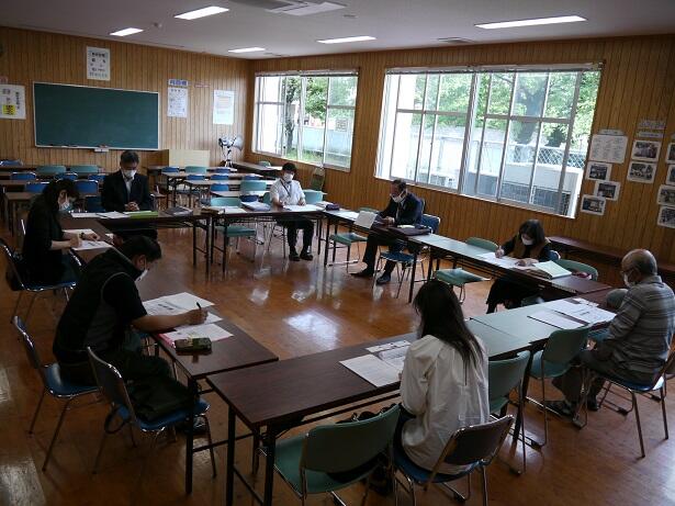3密を避けるため、校長室ではなくて会議室で、窓も開け放して行いました。