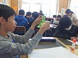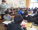こすもす支援学校との居住地校交流がありました。今回は、こすもす支援学校の6年生の温水こうきさんが、6年生の教室で交流しました。図工の作品作りを一緒に行い、交流を深めることができました。