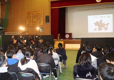 本校体育館で6年生を対象にお話会が実施されました。「くすのき文庫」の皆様と、市図書館の職員の皆様が来校され、読み聞かせやパネルシアター、クイズなどをしてくださいました。