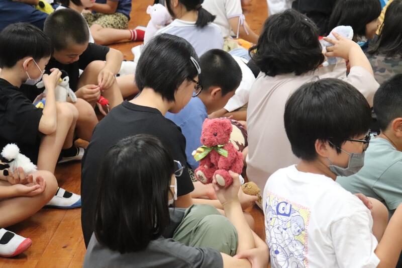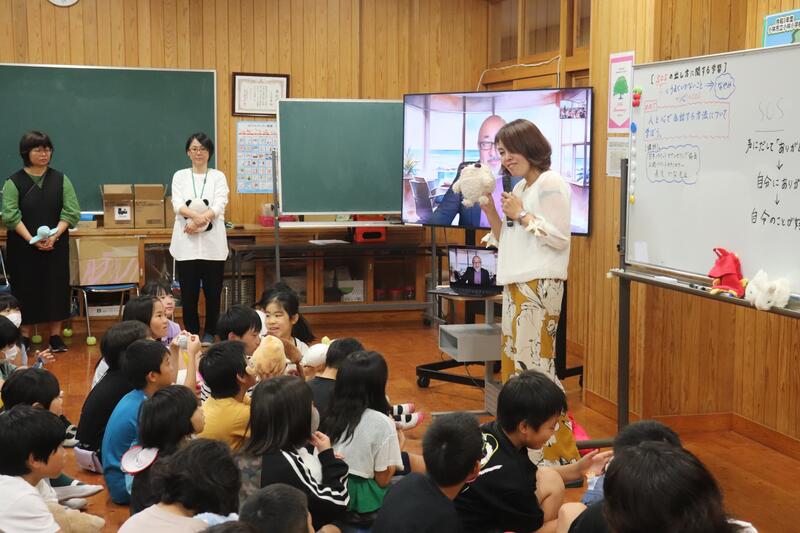 児童は、各家庭から持ち寄ったぬいぐるみを用いて、実際にぬいぐるみにあいさつをしたり、自らの悩みを話しかけたり、また、ぬいぐるみになったつもりで返答をしたりして、実際に自己内対話を通したセルフカウンセリングに笑顔で取り組むことができました。