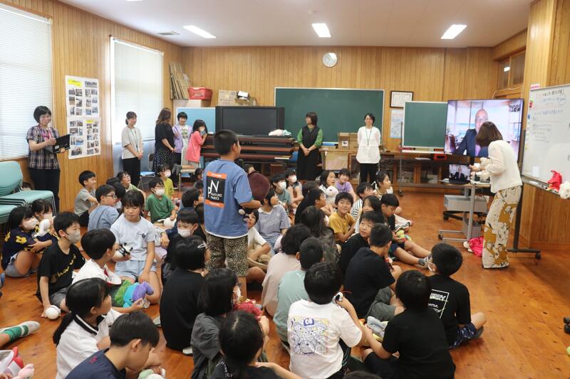 今回は、日本パペットカウンセリング協会(JPC)公認パペットカウンセラーの長友かなさんを講師に招き、パペット(人形)を用いた「パペットカウンセリング」を児童が実際に体験する、という学習を行いました。(本協会代表理事 鈴木幸一氏もZOOMにて、またアシスタントとして3名の方々が授業に参加し、笑顔で助言や個別支援をしてくださいました。)