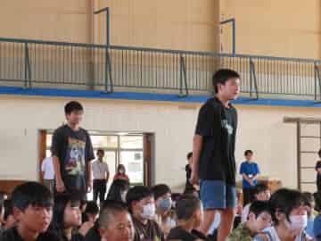 また、保健体育部の先生からは、クイズなどを交えて、「夏休み明けを元気に乗りこえるコツ」についての健康面についての話もあり、皆、楽しく参加していました。